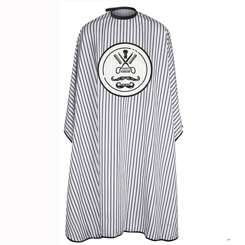 फैशन सफेद धारीदार सैलून हेयर कटिंग एप्रन यूनिसेक्स वयस्कों निविड़ अंधकार केप हज्जाम की दुकान नाई कपड़ा तस्वीर बंद करने के साथ
